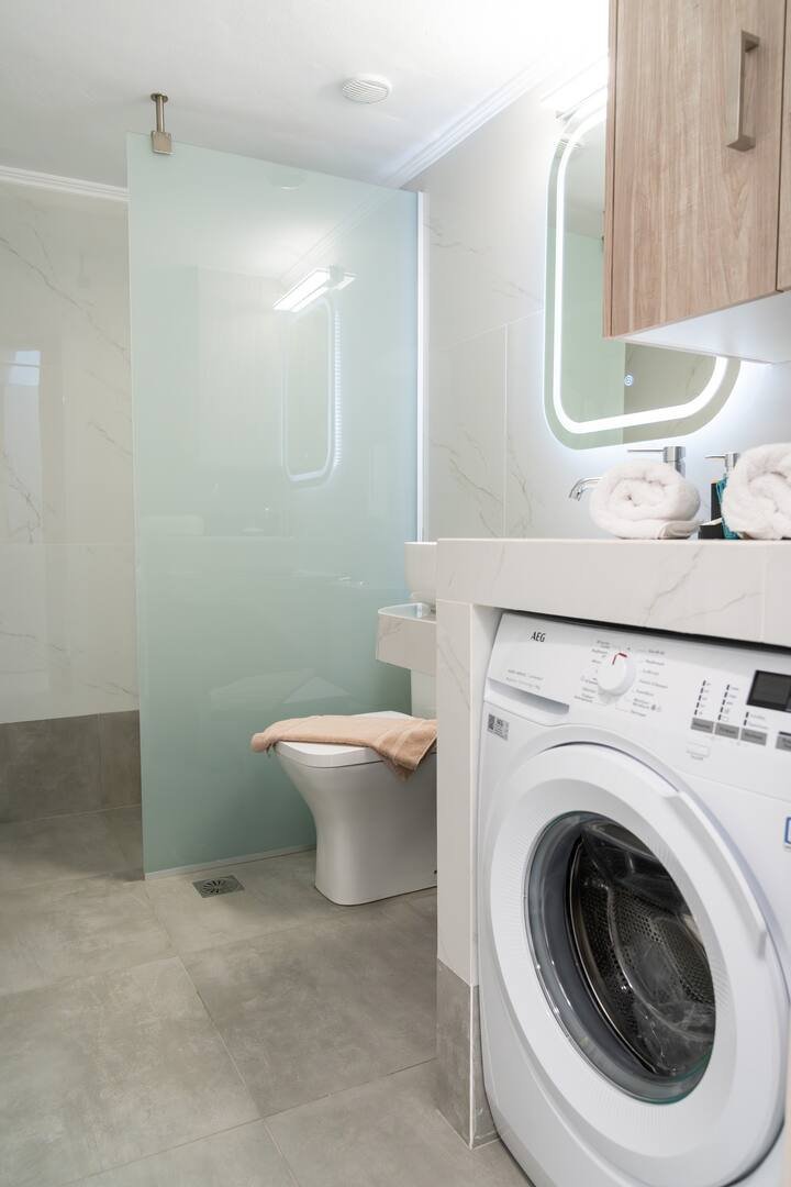 Our restroom is designed with modern finishes and clean lines, offering both style and comfort.
